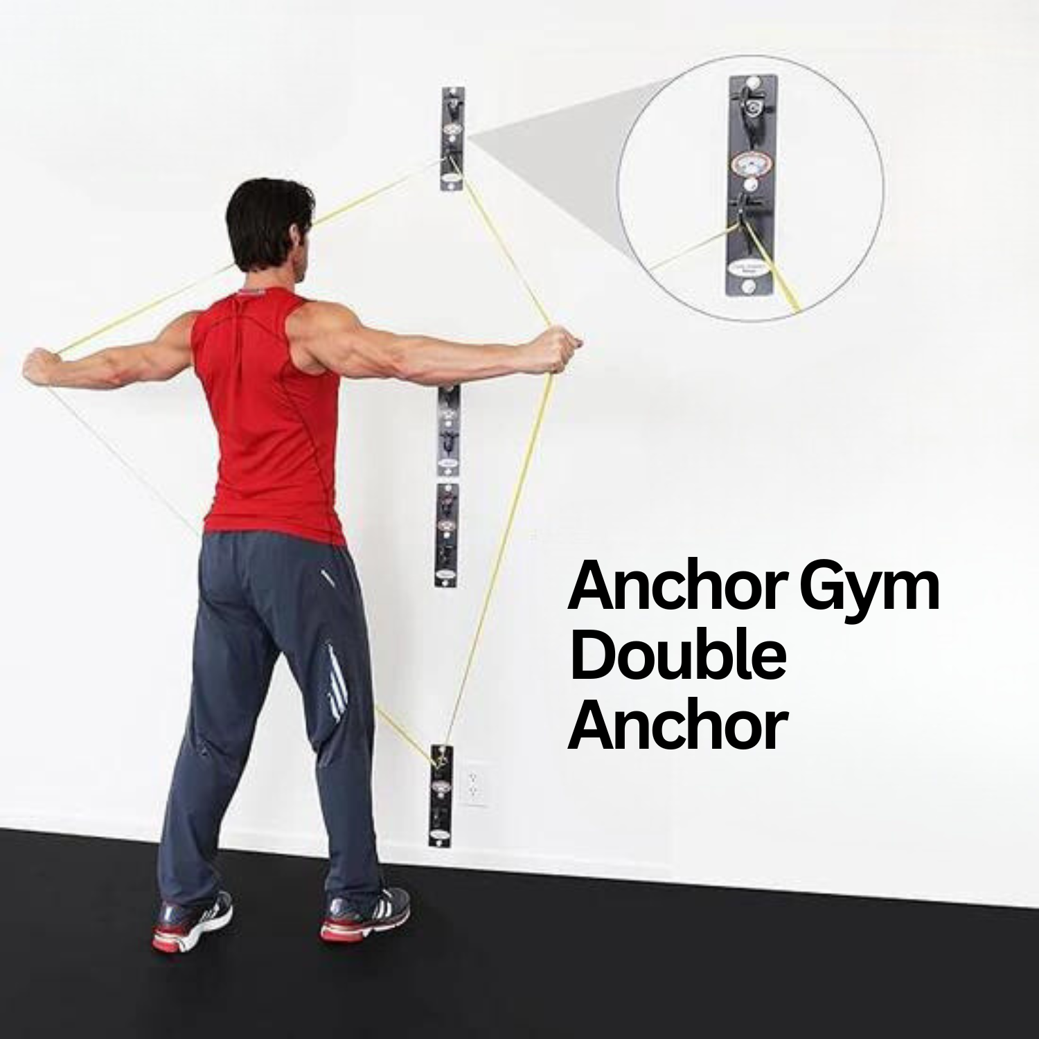 - DOES IT ALL: The Anchor Gym Double Anchor was designed to safely anchor resistance bands, body weight straps, stretch straps and more. It's easy to use, delivers hundreds of great exercises, takes up zero floor space and is very affordable.
